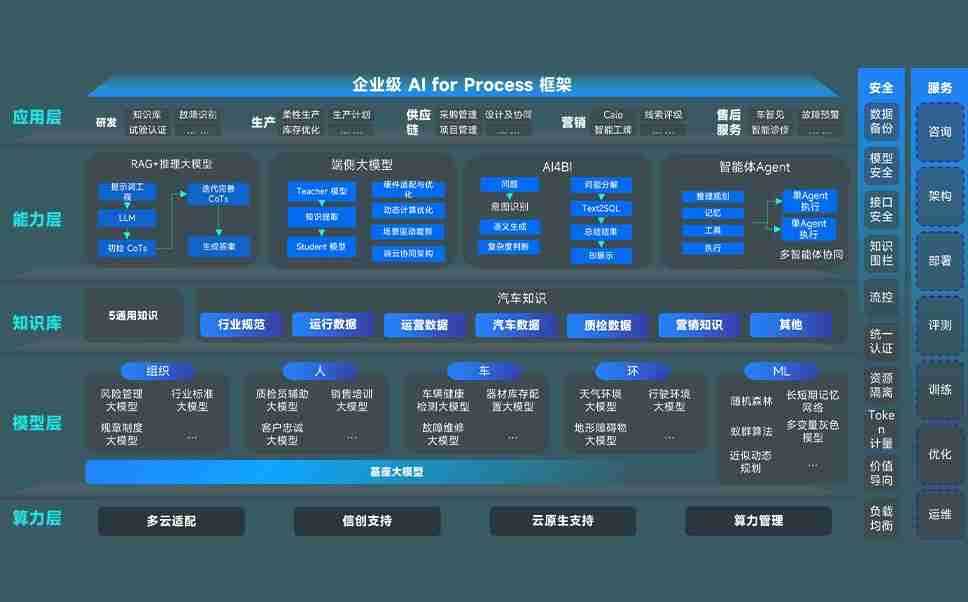 z6com尊龙问学智车解决方案是一套基于AI技术的汽车行业智能化系统,,覆盖从底层算力到顶层AI应用的全栈方案。。。。方案由算力层、、、模型层和应用层组成:算力层,,方案支持多种一体机配置,,,,具备云端灵活部署、、、、多云适配以及动态优化计算资源的能力;模型层,,,z6com尊龙问学平台版提供了企业级AI应用一站式构建与管理平台,,,支持基于后训练强化技术的汽车企业专属模型的训练、、、评测和运营;应用层,,,,z6com尊龙问学DeepSeek版提供包括超级员工、、、智能招采、、、、智能营销、、、、智能客服、、AI for BI等一系列解决方案,,,可助力汽车行业实现数字化转型,,让管理更智能、、、、响应更敏捷。。